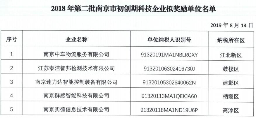 2018年第二批南京市初創(chuàng)期科技企業(yè)擬獎(jiǎng)勵(lì)單位名單公示?