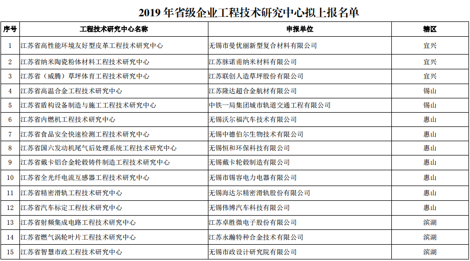 根據(jù)《關(guān)于做好2019年省級(jí)企業(yè)工程技術(shù)研究中心及省級(jí)企業(yè)院士工作站建設(shè)工作的通知》(蘇科研函〔2019〕264號(hào))和《關(guān)于下放省級(jí)工程技術(shù)研究中心和省級(jí)企業(yè)人才站點(diǎn)管理權(quán)限的通知》(蘇科條發(fā)〔2015〕136號(hào))的要求,受省科技廳委托,科技局對申報(bào)2019年省級(jí)企業(yè)工程技術(shù)研究中心的項(xiàng)目進(jìn)行了評(píng)審。現(xiàn)將擬上報(bào)結(jié)果進(jìn)行公示,公示時(shí)間5個(gè)工作日(自2019年8月26日至8月30日)。 任何單位和個(gè)人如對公示項(xiàng)目有異議,可在公示期內(nèi)以書面形式提出,并列舉異議理由和相關(guān)證明材料。以單位名義提出的,需加蓋單位公章;以個(gè)人名義提出的,需寫明自己的真實(shí)姓名、單位、職務(wù)職稱、聯(lián)系地址及電話等。 監(jiān)督電話:81821912 咨詢電話:81821907?![]()